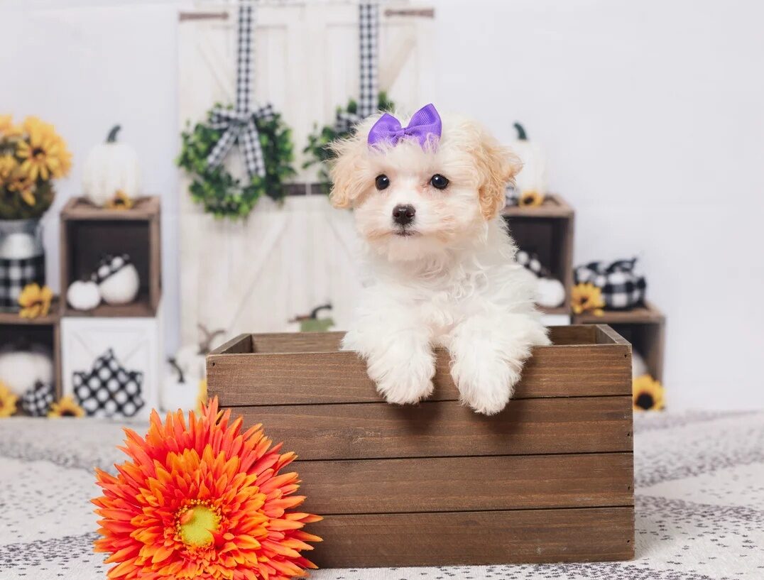 Yetty is ready to meet her perfect family. If you’re looking for a healthy, joyful Maltese Poodle puppy, contact us today to reserve her or schedule a visit.